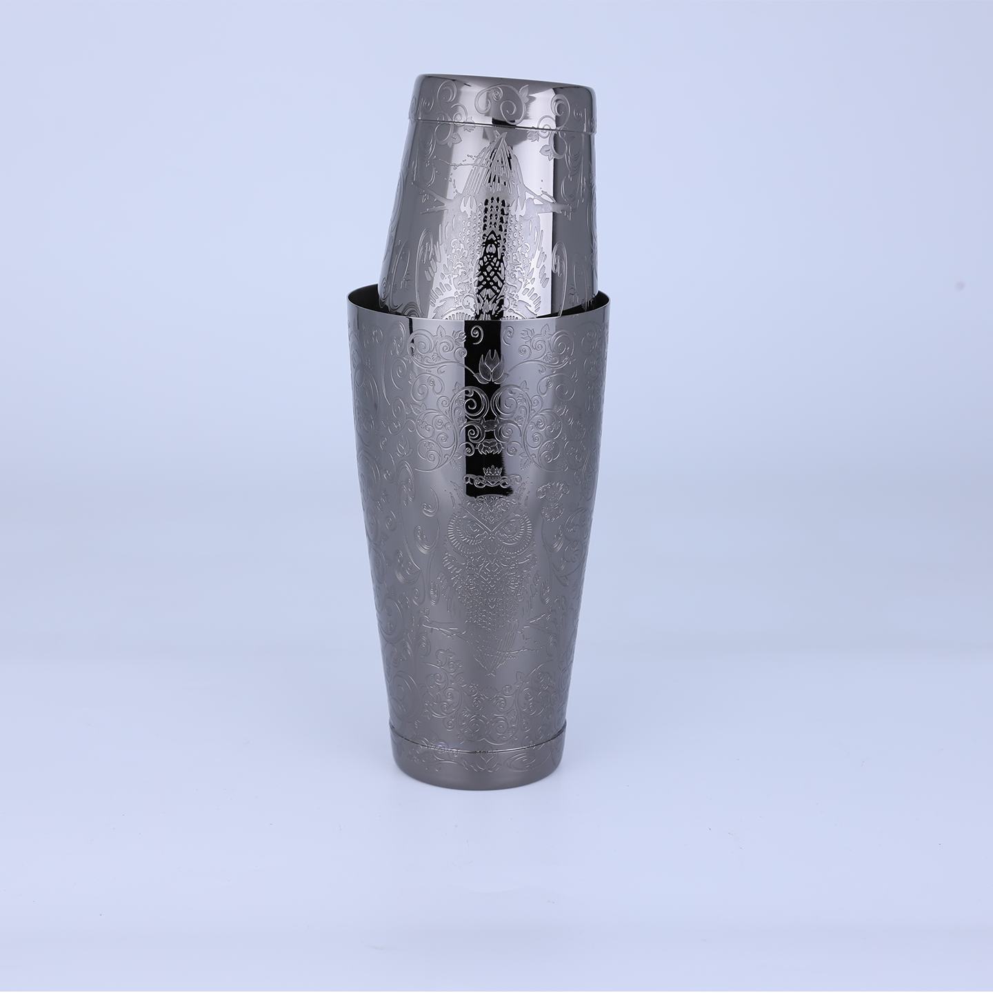 The Engraved Stainless Steel Boston Shaker E-Bon currently offers these patterns: fairy pattern, owl pattern, and deer head pattern, among which the deer head pattern is carved, and the others are all engraved. If you want the deer head pattern to be engraved, E-Bon can also do it for you.